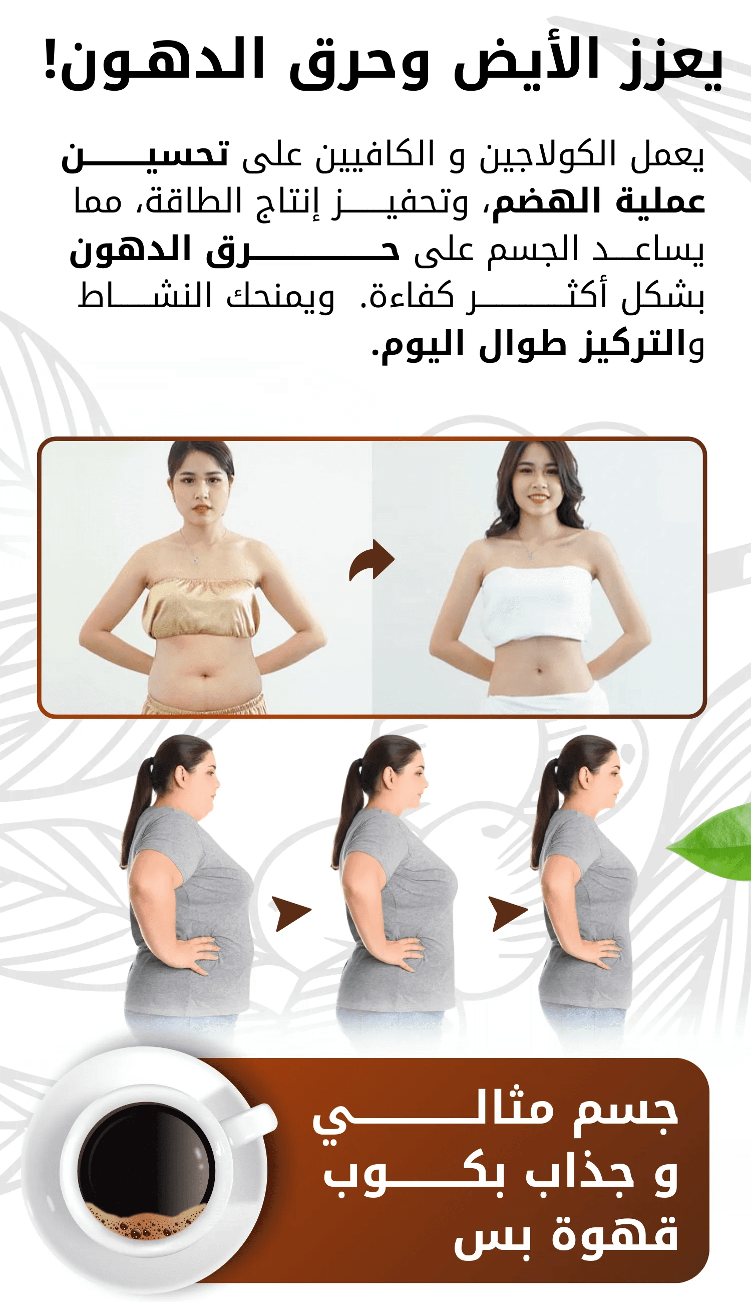 حافظ على شرب الماء لأن القهوة تسرّع الحرق وتحتاج ترطيب مستمر.